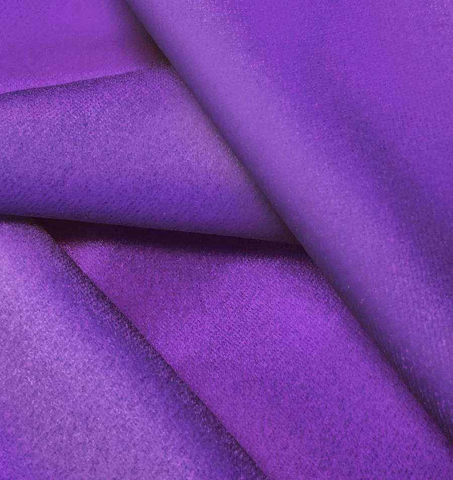 La Tela de Terciopelo Retro - Paris en color Morado Uva (CMYK: 75 87 0 0) es suave, brillante y elástica. Este color combina muy bien con tonos neutros como blanco, gris y negro, así como con tonos metálicos como oro y plata. La tela está impresa con este color liso a una sola cara por impresión digital textil.