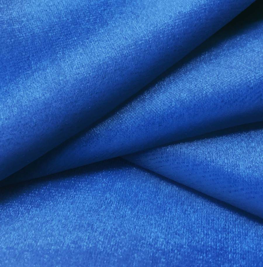 La tela base, Terciopelo Retro - Paris, es de una composición de 93% poliéster y 7% elastano, con un gramaje de 245 gr/m2 y un ancho de 150 cm. Su color liso impreso es Morado Zafiro, con un CMYK de 91 68 0 0.