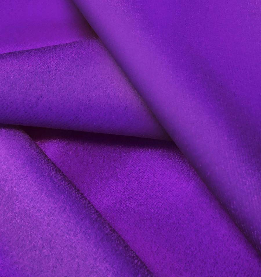 La tela está impresa con el color liso a una sola cara por impresión digital textil. La textura suave, el brillo y la elasticidad del tejido se complementan con la intensidad y opacidad del color morado, creando un efecto visual impactante.