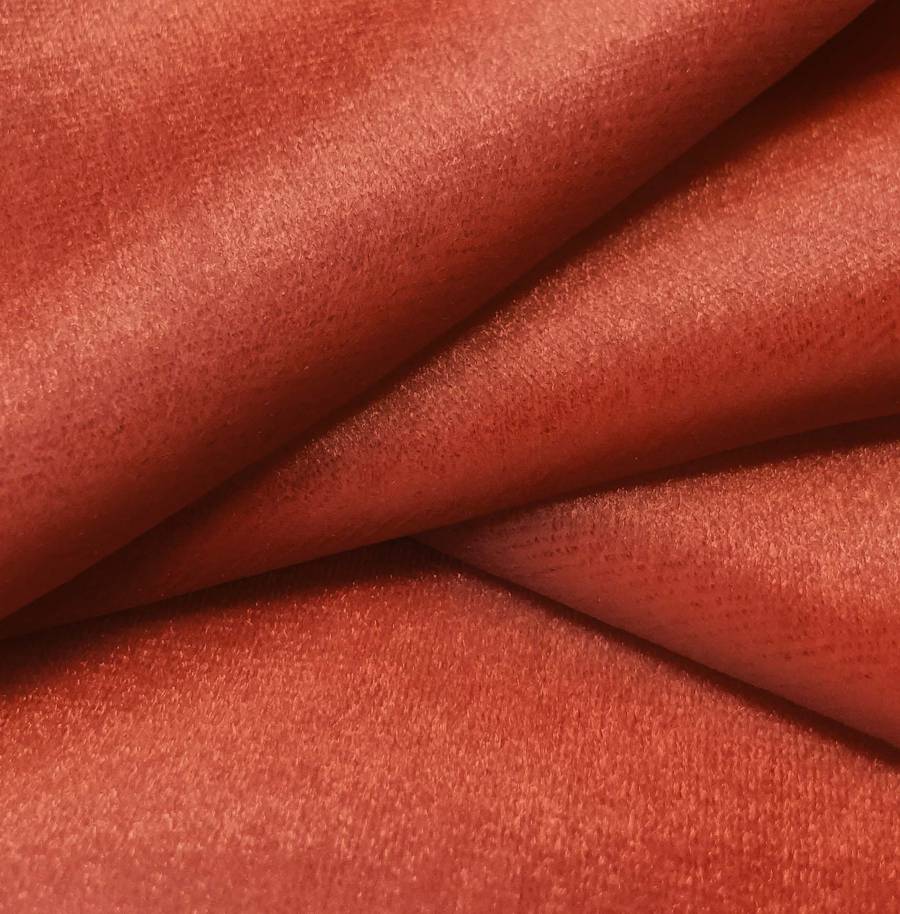 La tela está impresa con este color liso a una sola cara por impresión digital textil, lo que garantiza una alta calidad y durabilidad en el color. La textura suave y brillante del terciopelo realza la intensidad del color naranja, creando un efecto visual llamativo y elegante.