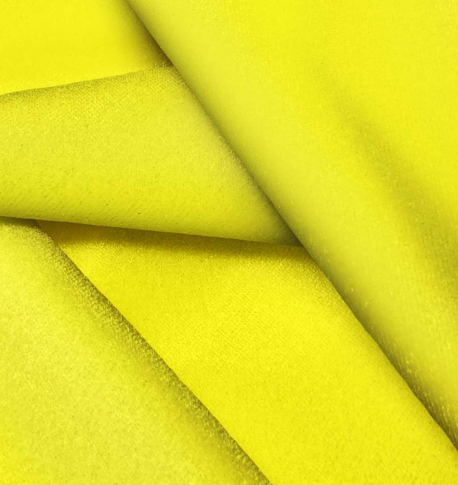 La tela base, Terciopelo Retro - Paris, es un terciopelo suave y brillante en color amarillo cadmio, con una combinación de 8% de tinta cyan y 88% de tinta yellow en el CMYK. Este color secundario transmite alegría y vitalidad, y combina especialmente bien con tonos neutros como blanco, negro y gris, así como con tonos cálidos como naranja y rojo.