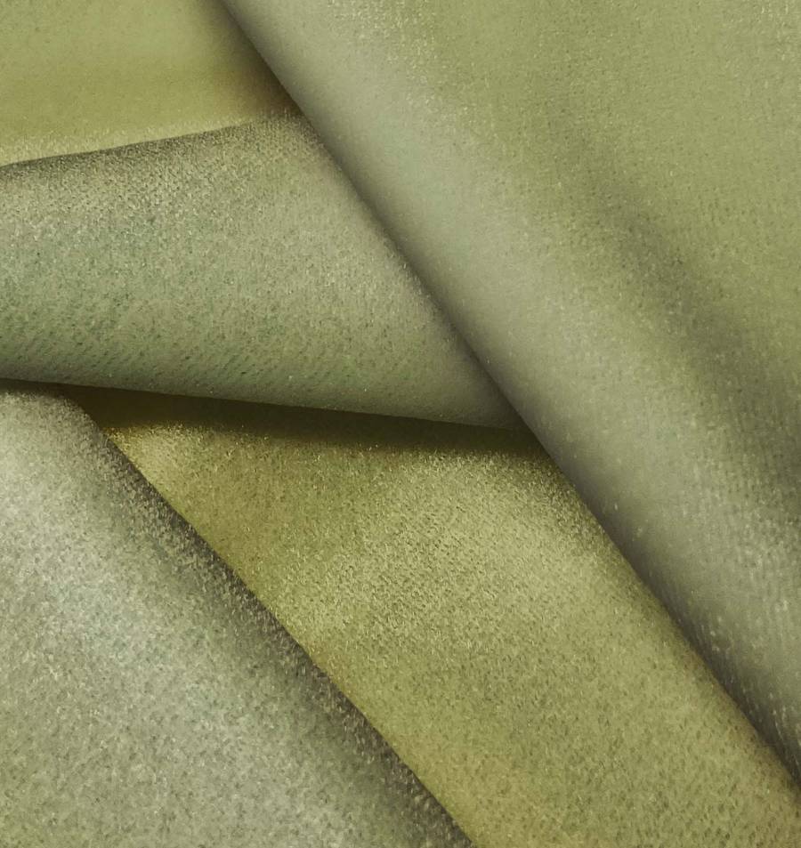 La tela base Terciopelo Retro - Paris es de terciopelo con una composición de 93% poliéster y 7% elastano, de color verde alga con un CMYK de 48 34 69 19. Este tono verde alga simboliza la naturaleza y la frescura, y se combina especialmente bien con tonos como el blanco, gris y azul marino.