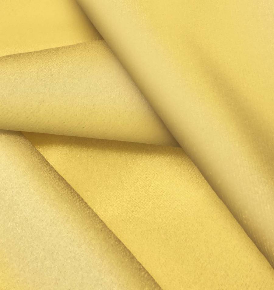 La tela está impresa con el color liso Amarillo Mimosa a una sola cara por impresión digital textil. Esta tecnología permite una reproducción precisa de los colores y un acabado brillante y suave.