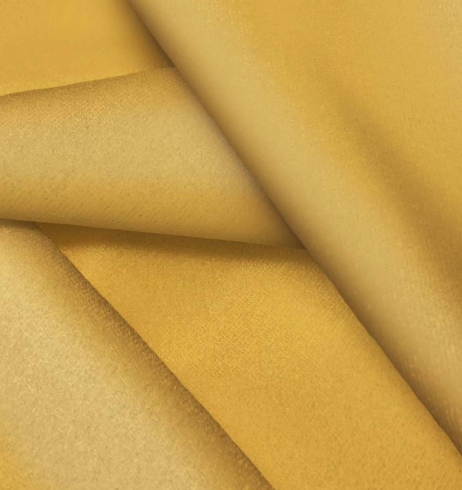 La tela base, Terciopelo Retro - Paris, es una tela de terciopelo con una composición de 93% poliéster y 7% elastano, de color amarillo mostaza con un CMYK 20 44 84 9. Este color transmite calidez y luminosidad, perfecto para dar un toque de elegancia y sofisticación a cualquier prenda o decoración. Combina especialmente bien con colores neutros como el blanco, negro y gris, así como con tonos tierra y verde oliva.