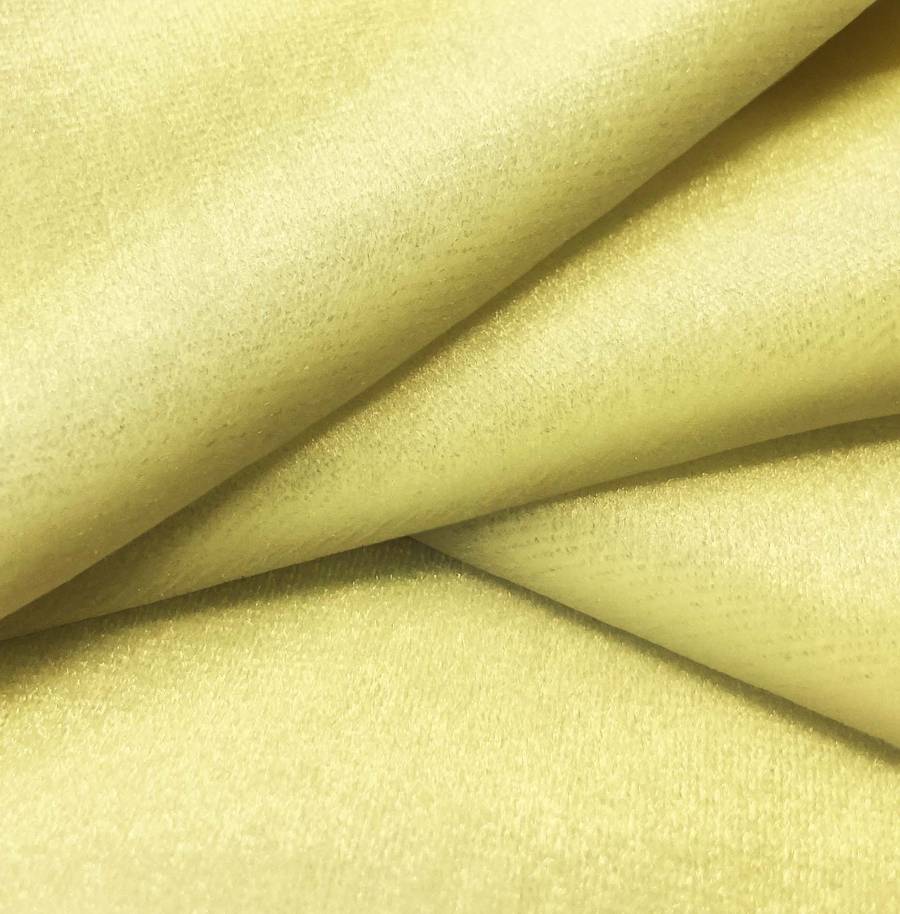 La tela base, Terciopelo Retro - Paris, es de terciopelo suave y brillante de color amarillo plátano, con un CMYK de 2 6 64 0. Este color se caracteriza por su tono cálido y vibrante, que combina especialmente bien con tonos neutros como blanco, gris y negro.