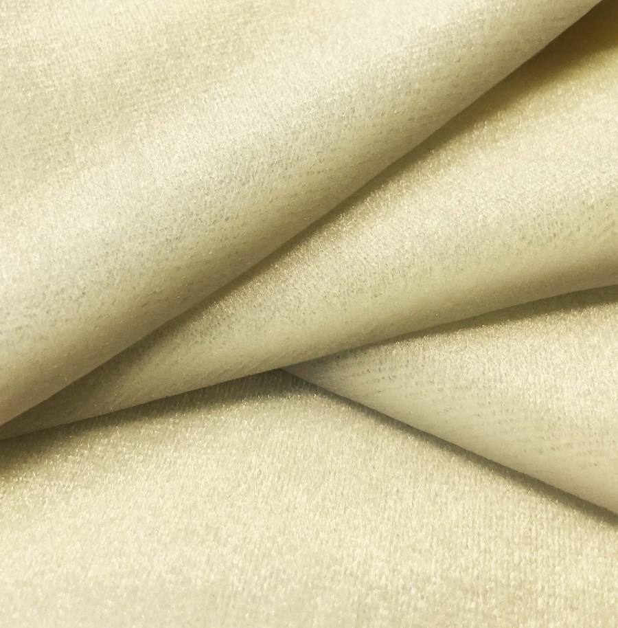 La tela base, Terciopelo Retro - Paris, es una lujosa tela de terciopelo con una composición de 93% poliéster y 7% elastano, con un gramaje de 245 gr/m2 y un ancho de 150 cm. El color liso impreso es un hermoso tono amarillo-beige con un CMYK de 9 14 47 0, lo que le da un aspecto brillante y suave. Este color combina perfectamente con tonos neutros como blanco, gris y negro.