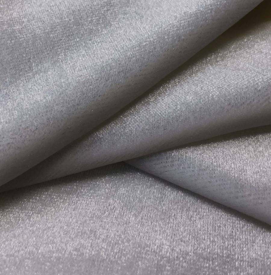 La tela base, Terciopelo Retro - Paris, es una tela de terciopelo compuesta por 93% POLIÉSTER y 7% ELASTANO, de color gris plata metálica con un CMYK de 45 40 35 17. Este color secundario simboliza elegancia y sofisticación, combina perfectamente con tonos neutros como blanco, negro y gris, así como con tonos pastel como rosa o celeste.