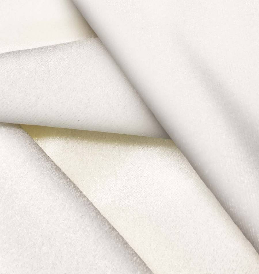 La tela base, Terciopelo Retro - Paris, es una tela de terciopelo con una composición de 93% poliéster y 7% elastano, con un gramaje de 245 gr/m2 y un ancho de 150 cm. Su color impreso es Blanco, concha, con un CMYK de 0 5 7 0. Este color se caracteriza por ser suave, brillante y elástico, combinando especialmente bien con tonos neutros como el gris, el beige y el dorado.