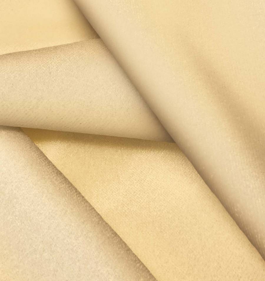 La tela base, Terciopelo Retro - Paris, es una tela de terciopelo compuesta por 93% de poliéster y 7% de elastano. Su color liso impreso es Naranja Albaricoque Oscuro, con un CMYK de 3 27 52 0. Este color se caracteriza por su calidez y luminosidad, combinando perfectamente con tonos tierra y neutros para lograr un aspecto sofisticado y elegante.