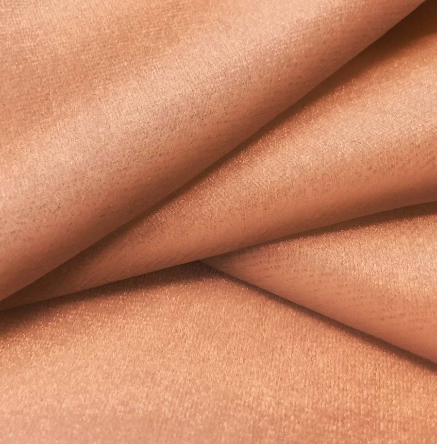 La tela base, Terciopelo Retro - Paris, es de terciopelo con una composición de 93% poliéster y 7% elastano. El color liso impreso en esta tela es Naranja Cinabrio, con un CMYK de 8 61 65 1. Este tono naranja intenso simboliza la pasión y la creatividad, y combina muy bien con colores como el blanco, el negro y el gris.