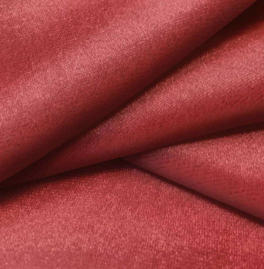 La tela base, Terciopelo Retro - Paris, es un tejido de terciopelo compuesto por 93% poliéster y 7% elastano, con un gramaje de 245 gr/m2 y un ancho de 150 cm. El color liso impreso es un Rojo Auburn con los siguientes porcentajes en el CMYK: 24% de cyan, 93% de magenta, 82% de yellow y 19% de black. Este color secundario es profundo, intenso y cálido, combinando perfectamente con tonos neutros como el blanco, negro o gris, así como con tonos más vibrantes como el naranja o el amarillo.