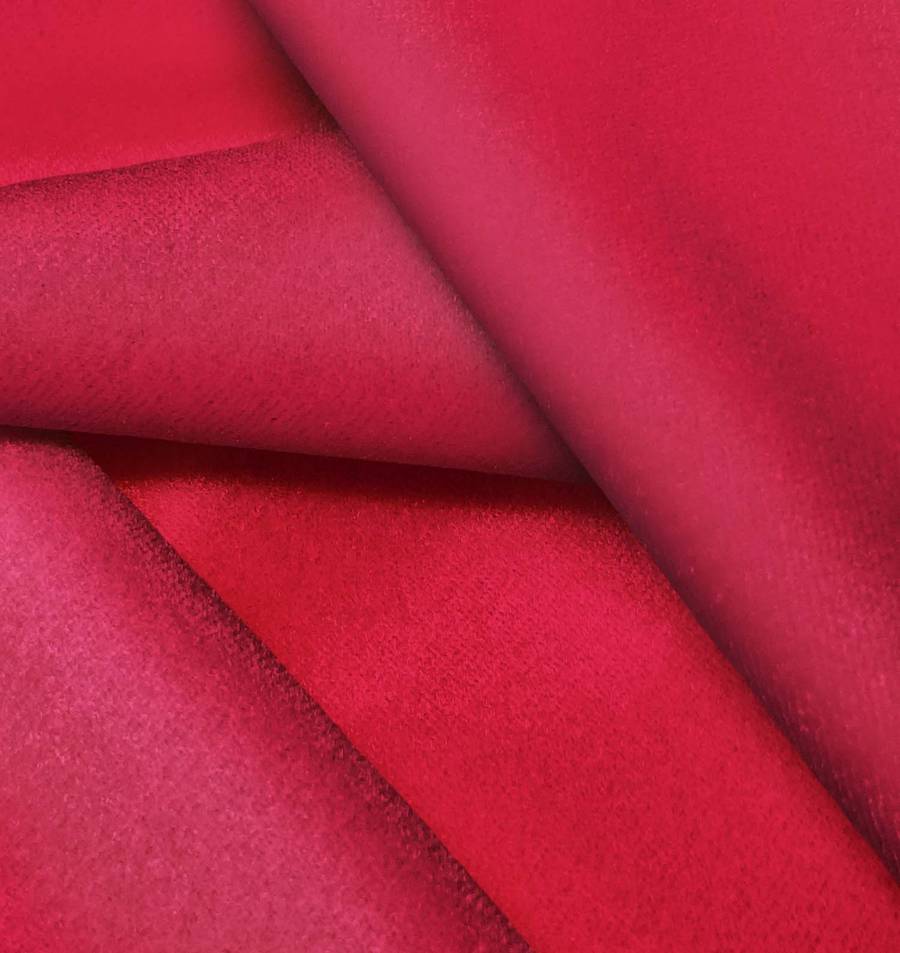 La tela base, Terciopelo Retro - Paris, es de terciopelo con composición de 93% poliéster y 7% elastano, con un gramaje de 245 gr/m2 y ancho de 150 cm. El color impreso es Rojo Escarlata, con una mezcla de tintas Cyan 18, Magenta 100, Yellow 77 y Black 8, con un perfil CMYK de 18 100 77 8.