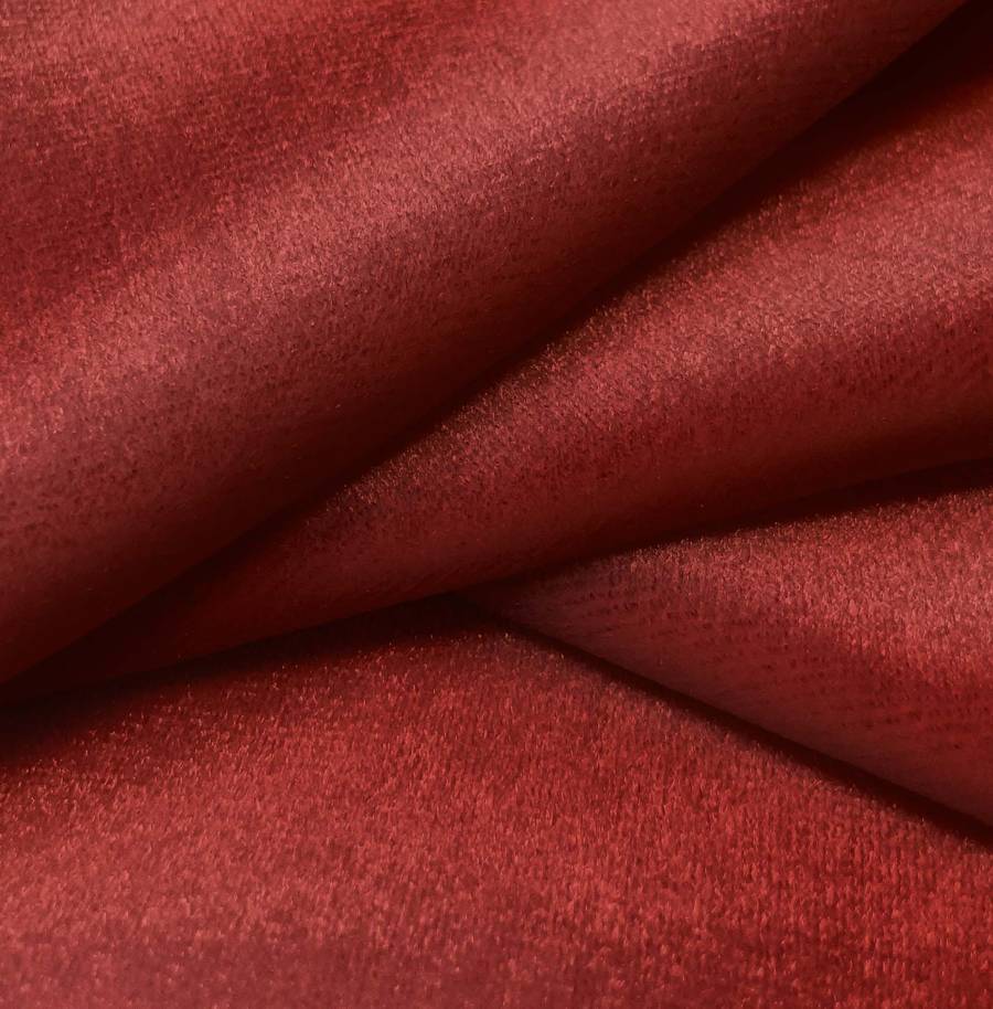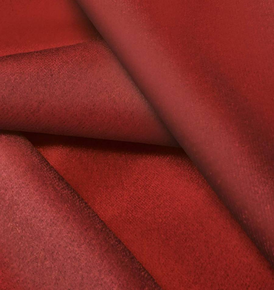 La tela base, denominada Terciopelo Retro - Paris, es una tela de terciopelo compuesta por 93% POLIÉSTER y 7% ELASTANO, con un gramaje de 245 gr/m2 y un ancho de 150 cm. El color liso impreso es un rojo intenso con tonalidades de granero, reflejado en un CMYK de 30 100 100 42. Este color evoca pasión y energía, y combina especialmente bien con colores neutros como blanco, negro y gris.