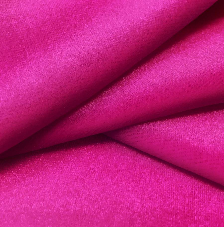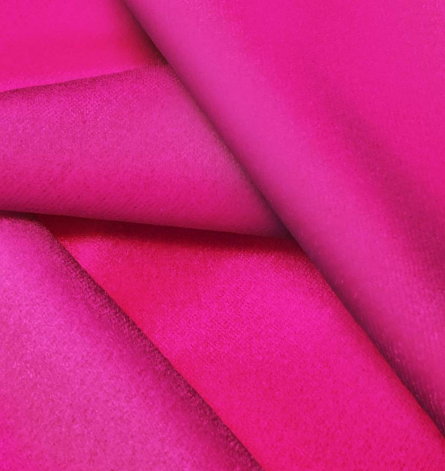 La tela base, Terciopelo Retro - Paris, es un lujoso tejido de terciopelo compuesto por 93% de poliéster y 7% de elastano, con un gramaje de 245 gr/m2 y un ancho de 150 cm. Su color liso impreso en rojo y púrpura refleja un CMYK de 2 98 10 0. El color púrpura simboliza la creatividad, la ambición y la sabiduría, y se combina especialmente bien con tonos neutros como el blanco y el gris.