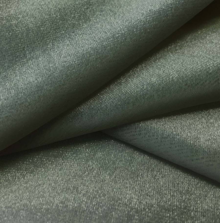 La tela base, Terciopelo Retro - Paris, es una tela de terciopelo brillante y elástica, de color verde acorazado con un CMYK de 64 46 65 44. Combina especialmente con tonos neutros como blanco y negro. El tejido está impreso con este color liso a una sola cara por impresión digital textil, lo que le otorga una apariencia vibrante y duradera.