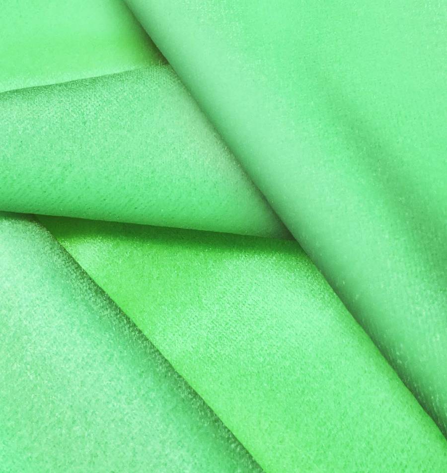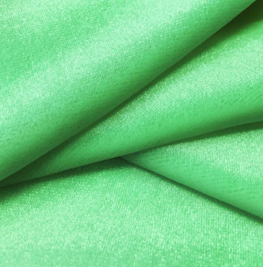 La tela base, Terciopelo Retro - Paris, es un tejido de terciopelo compuesto por 93% poliéster y 7% elastano, con un gramaje de 245 gr/m2 y un ancho de 150 cm. Su color liso impreso es Verde Heliógeno, con una composición de tinta Cyan: 52, Magenta: 0, Yellow: 67, Black: 0 y un CMYK de 52 0 67 0. Este color vibrante y brillante combina perfectamente con tonos neutros como blanco, gris o negro, resaltando su luminosidad y sofisticación.
