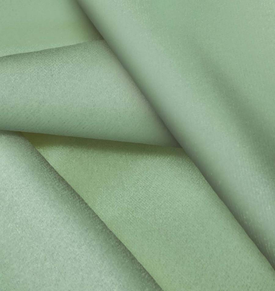 La tela base, Terciopelo Retro - Paris, es de terciopelo con composición de 93% poliéster y 7% elastano, con un gramaje de 245 gr/m2 y un ancho de 150 cm. El color liso impreso es Verde Hiedra, con un CMYK de 57 26 57 8, que combina perfectamente con tonos tierra y dorados.