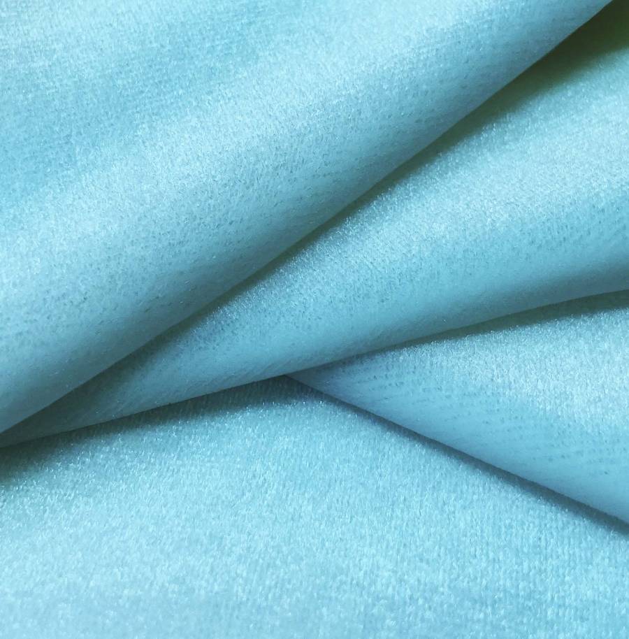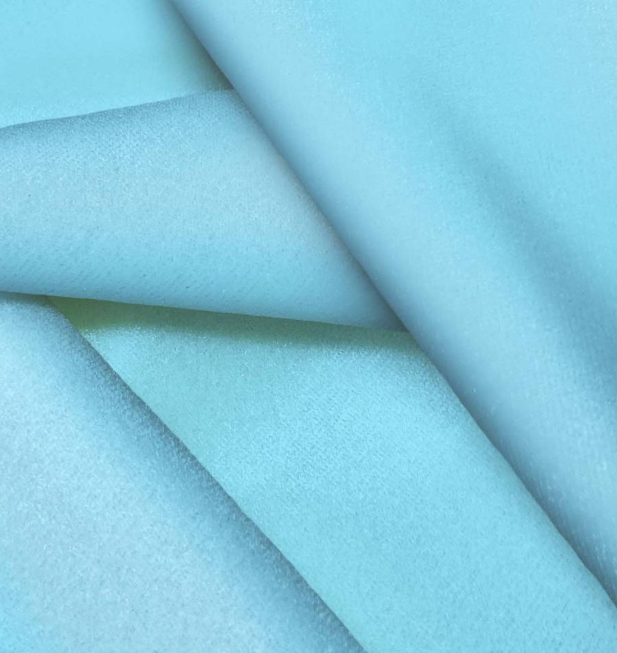 La tela base, Tela de Terciopelo Retro - Paris, es de color azul claro con un contenido CMYK de 55 3 0 0. Este color simboliza la tranquilidad, la calma y la frescura. Combina especialmente bien con tonos neutros como el blanco, gris y beige, así como con colores más fuertes como el dorado o el naranja para un contraste moderno y vibrante. El tejido está impreso con este color liso a una sola cara por impresión digital textil.