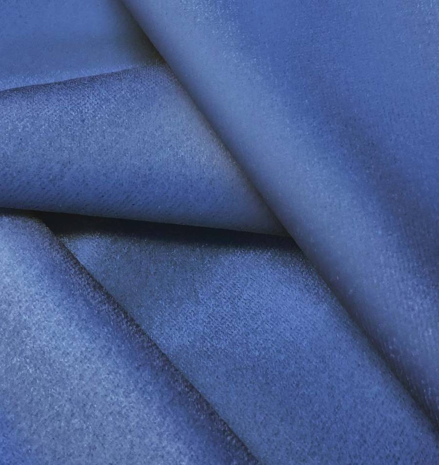 La tela base, Terciopelo Retro - Paris, presenta un color liso impreso en tonalidad Azul París, con una combinación de CMYK de 86 68 17 3. Este color simboliza la elegancia y el estilo francés, combinando a la perfección con tonos neutros como el blanco, gris y negro.