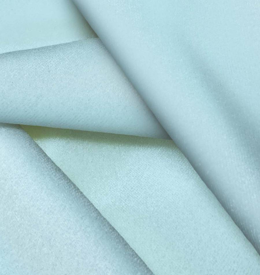 La Tela de Terciopelo Retro - Paris es de color Azul Hielo, con un CMYK de 42 5 13 0. Este tono evoca frescura y serenidad. Combina especialmente bien con colores neutros como el blanco o el gris, así como con tonos cálidos como el dorado o el beige.