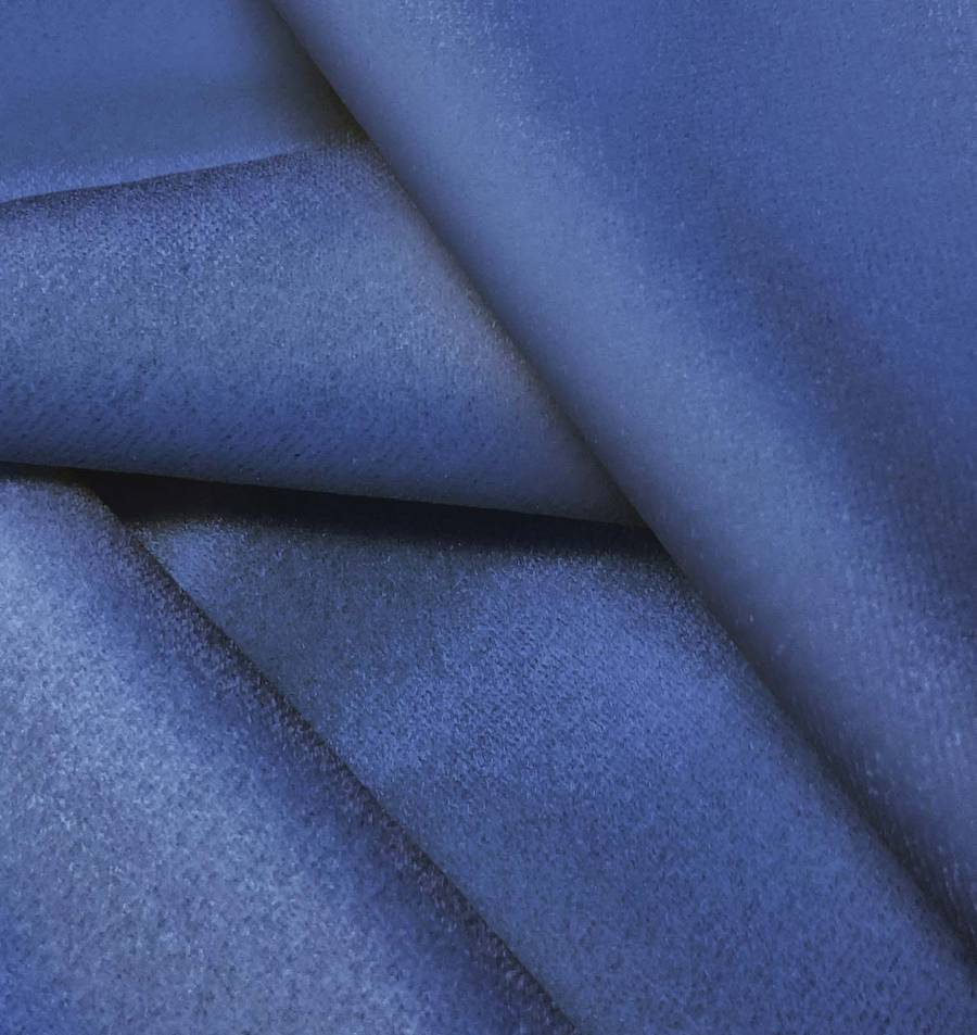 La tela base, Terciopelo Retro - Paris, es un suave terciopelo de poliéster elástico en color Azul Oriente, con una mezcla de tintas CMYK de 89/73/21/6. Este color evoca la serenidad del oriente y se combina especialmente bien con tonos neutros como el blanco, el dorado y el plateado.