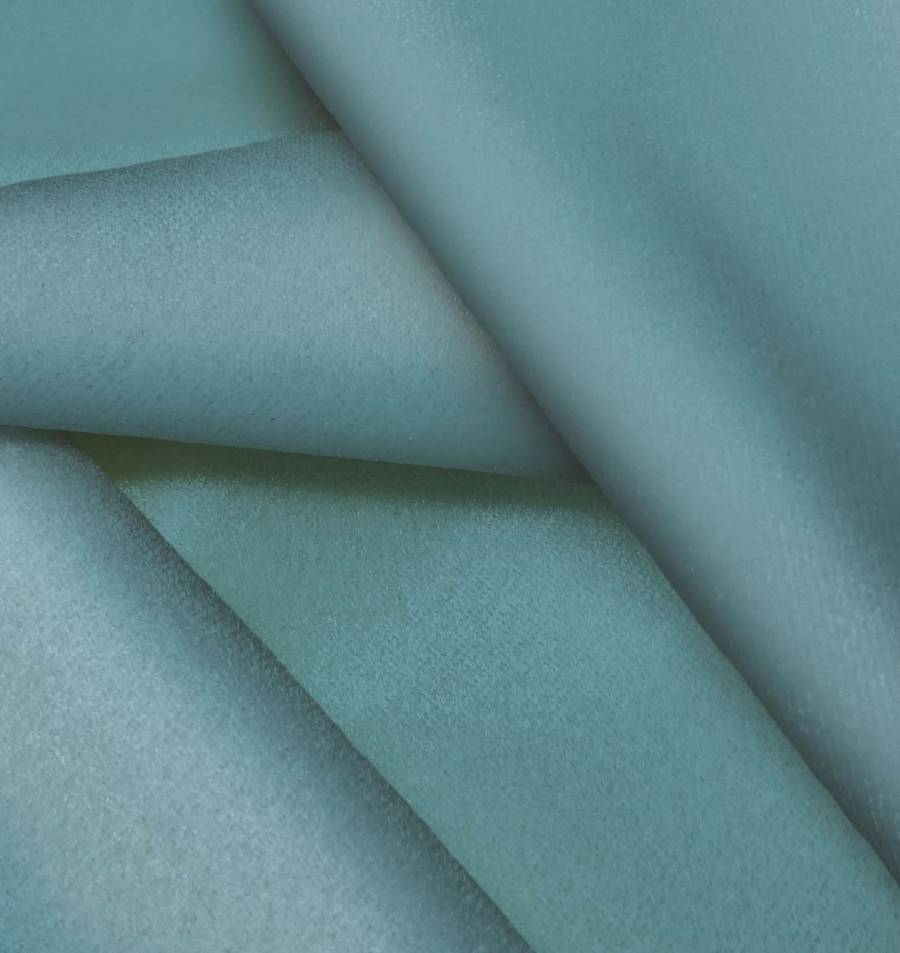 La Tela de Terciopelo Retro - Paris en color Azul Porcelana, con un CMYK de 70 37 40 21, es suave, brillante y elástica. Combina con colores neutros como gris y blanco, resaltando su tono azul profundo.