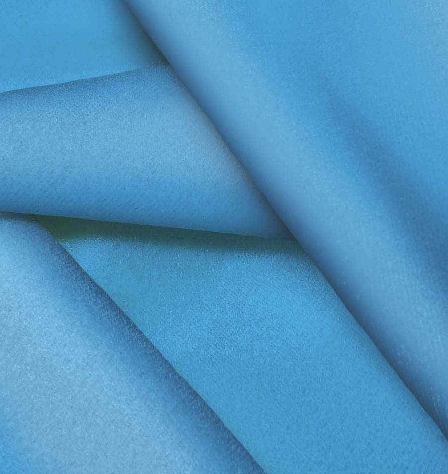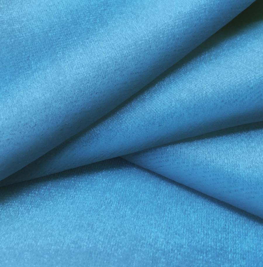 La tela base es Terciopelo Retro - Paris de color Azul Virgen, con un CMYK de 77 40 6 0. Este color simboliza la calma y la serenidad, con una intensidad moderada que aporta elegancia y sofisticación. Combina muy bien con tonos neutros como blancos, grises y negros, así como con colores más vibrantes como el dorado o el rosa.