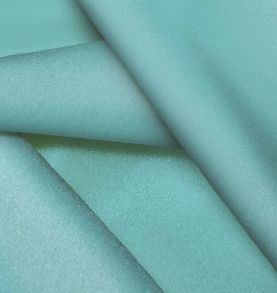 La tela base Terciopelo Retro - Paris se caracteriza por su composición de 93% poliéster y 7% elastano, brindando suavidad y elasticidad. El color liso impreso en este caso es Azul Cadet Blue, con una combinación CMYK de 65 21 37 4, lo que resulta en un tono azul brillante y elegante. Este color combina especialmente bien con tonos neutros como blanco, negro y gris, resaltando su luminosidad.