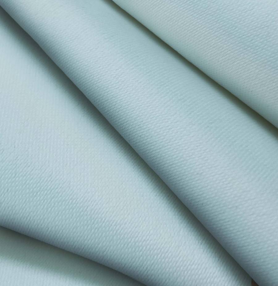 La tela base, Lona Oscurante - White Out, es de tejido técnico 100% poliéster con un gramaje de 218 gr/m2 y un ancho de 160 cm. El color liso impreso es Azul CadetBlue, con valores CMYK de 48 22 25 3. Este color simboliza la serenidad y frescura, combinando perfectamente con tonos neutros como blanco y gris. Su textura lisa y visual opaca lo hace ideal para aplicaciones decorativas en interiores y exteriores.