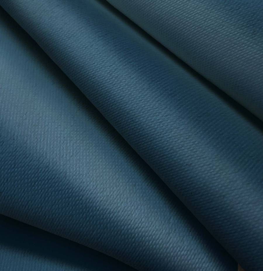 La tela base de la Lona Oscurante - White Out es de tejido técnico de poliéster, con un gramaje de 218 gr/m2, de color blanco puro y de una textura lisa y rígida. El color liso impreso es Azul Profundo, con una combinación de tintas Cyan 99, Magenta 73, Yellow 45 y Black 46, reflejando un CMYK de 99 73 45 46. Este color simboliza la profundidad, la calma y la serenidad. Combina especialmente bien con tonos neutros como el blanco, el gris y el negro, así como con tonos metálicos como el oro y la plata.