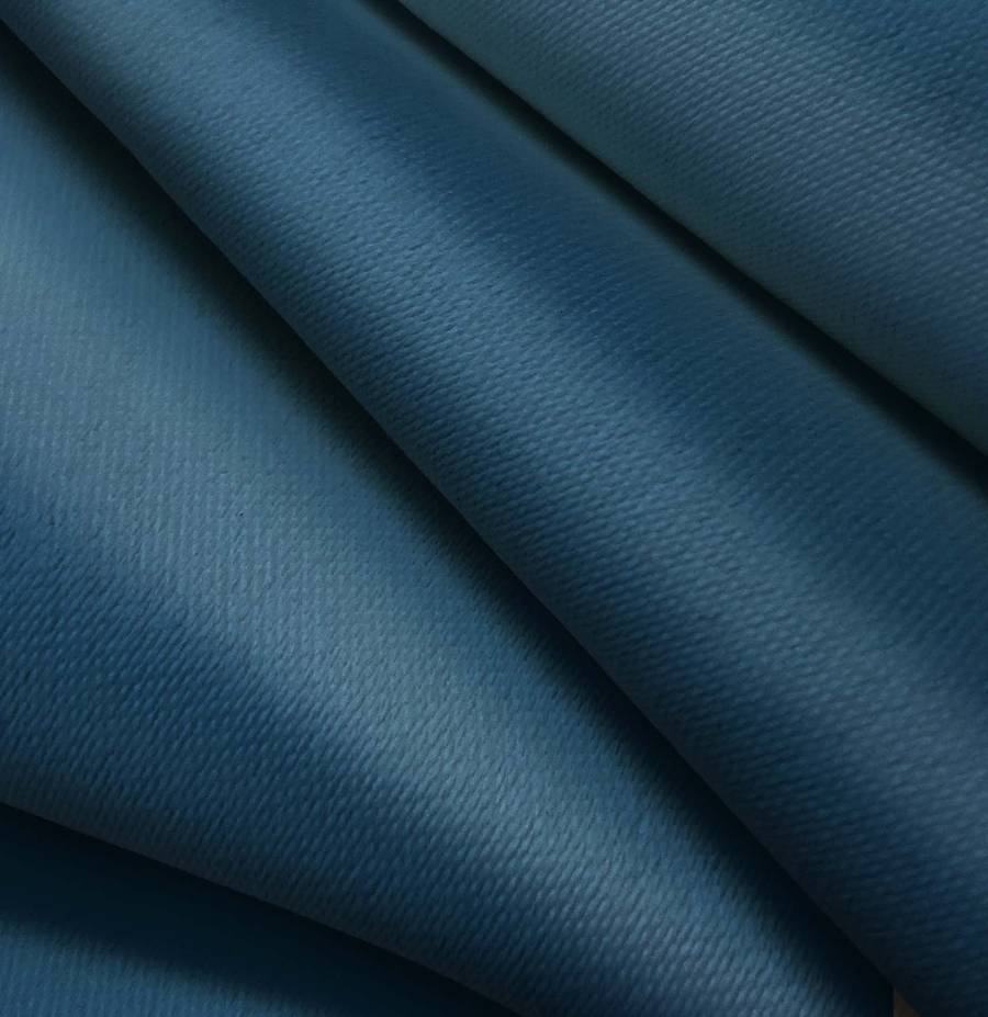 La tela base es Lona Oscurante - White Out, con un color liso impreso en Azul Profundo, representado por un CMYK de 99 72 42 38. Este tono profundo simboliza la serenidad y la confianza, combinando especialmente bien con colores como blanco, gris y amarillo.