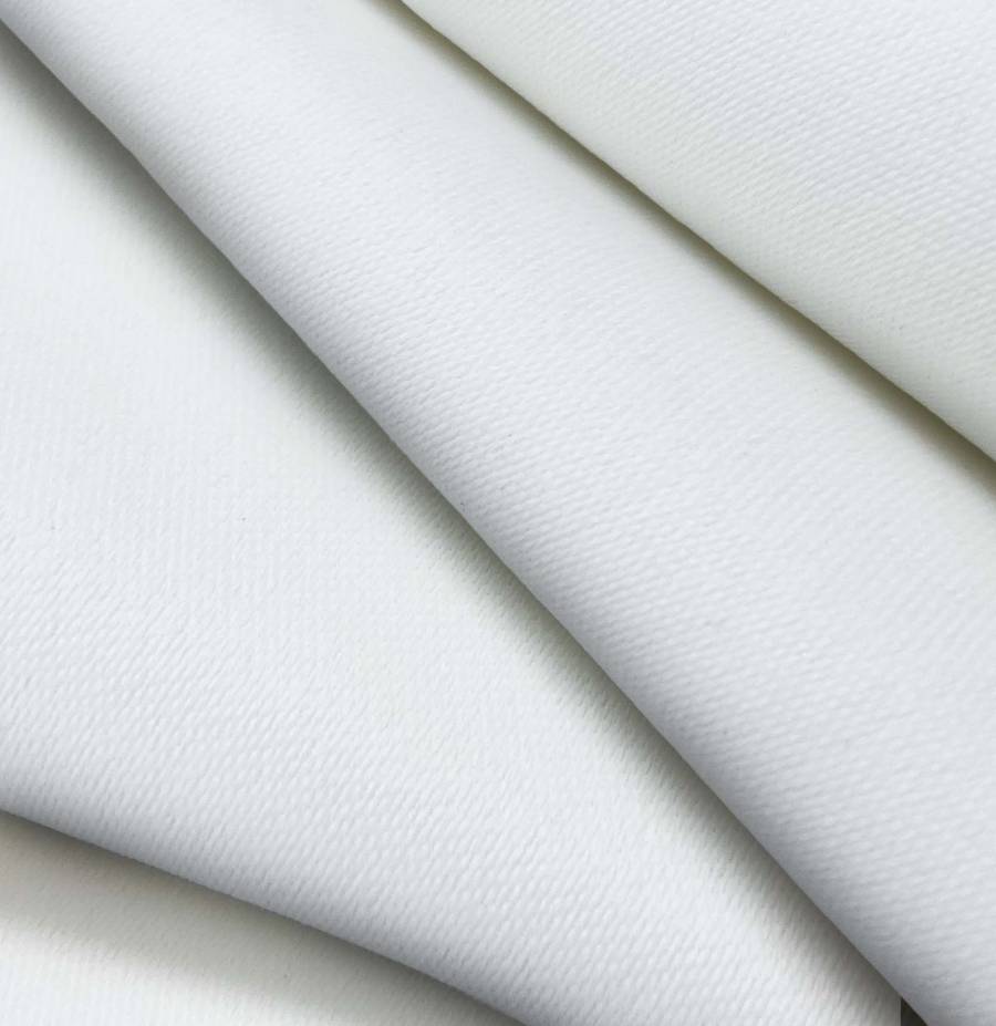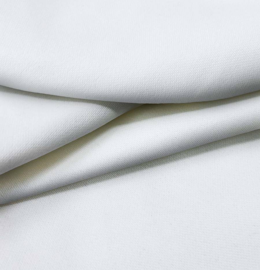 La tela base es Lona Oscurante, color White Out, con un CMYK de 12 6 5 0, predominando el color Gris Platino. Este tono simboliza elegancia y sofisticación, combinando perfectamente con colores neutros como blanco, negro y beige.