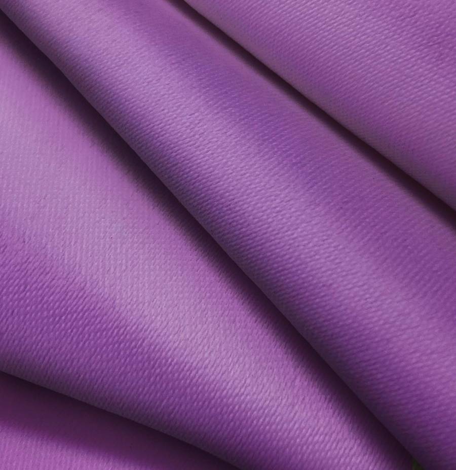La tela base, Lona Oscurante - White Out, es un tejido técnico de 100% poliéster con un gramaje de 218 gr/m2 y un ancho de 160 cm. El color liso impreso es Morado Iris, con un CMYK de 57 80 5 0. Este tono morado oscuro combina a la perfección con colores neutros como el gris y el blanco, así como con tonos más cálidos como el dorado o el rosa.