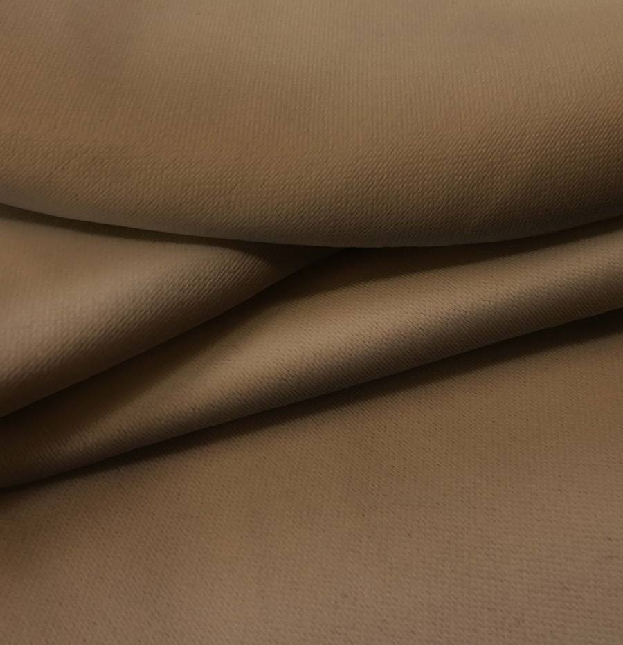La tela base es una Lona Oscurante en color blanco, impresa con un color liso Marrón Chocolate con leche, con un CMYK de 44 61 82 59. Este tono secundario es cálido y acogedor, perfecto para crear ambientes acogedores y elegantes. Combinado con tonos neutros como beige o blanco, resalta su riqueza y calidez.