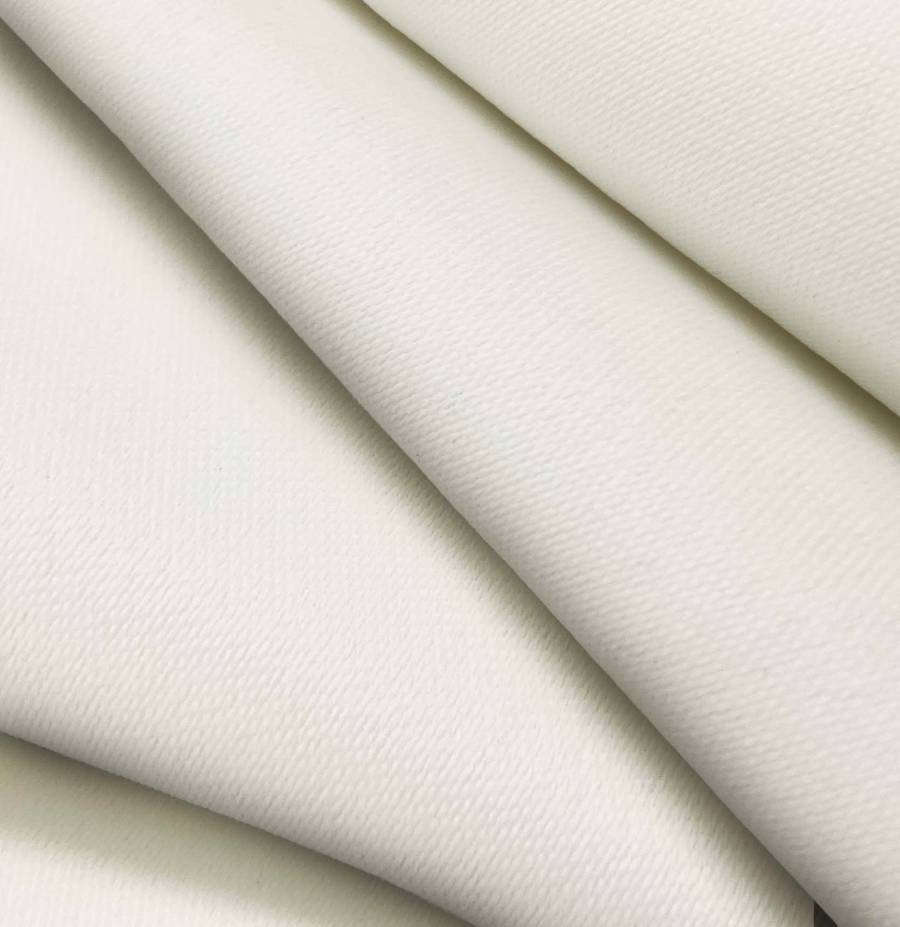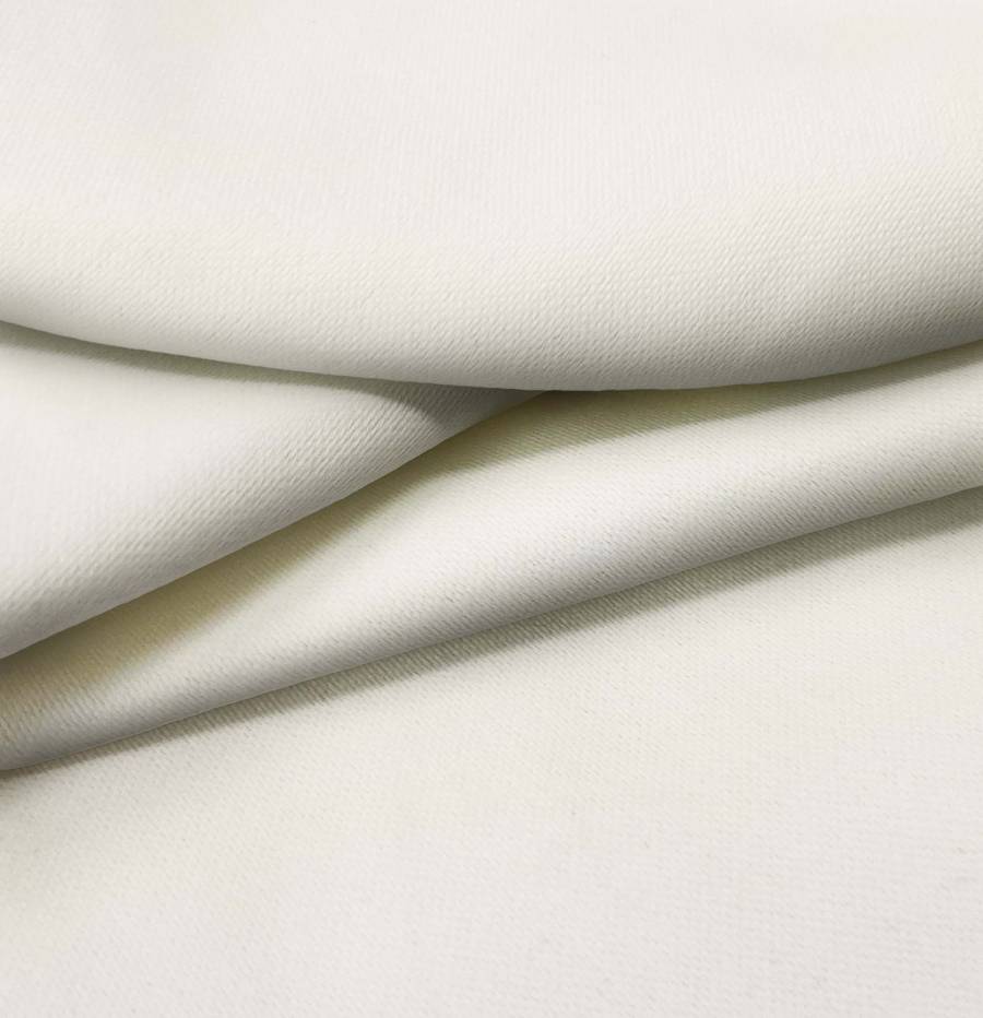 La tela base, Lona Oscurante - White Out, es un tejido técnico de poliéster con un color liso impreso en blanco. El CMYK del color impreso es 7 7 17 0, lo que indica un tono blanquecino con una mayor saturación de amarillo. Este color combina especialmente bien con tonos neutros como gris y beige.