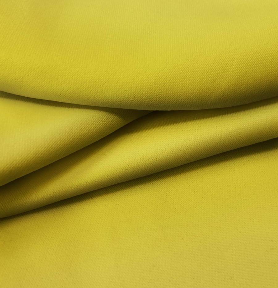 La tela base es una lona oscurante de color blanco, con un gramaje de 218 gr/m2 y una composición de 100% poliéster. El color liso impreso es amarillo galleta, con una mezcla de tintas Cyan 28, Magenta 28, Yellow 99 y Black 10 en un CMYK de 28 28 99 10. Este color secundario combina especialmente con tonos neutros como gris, blanco y beige.