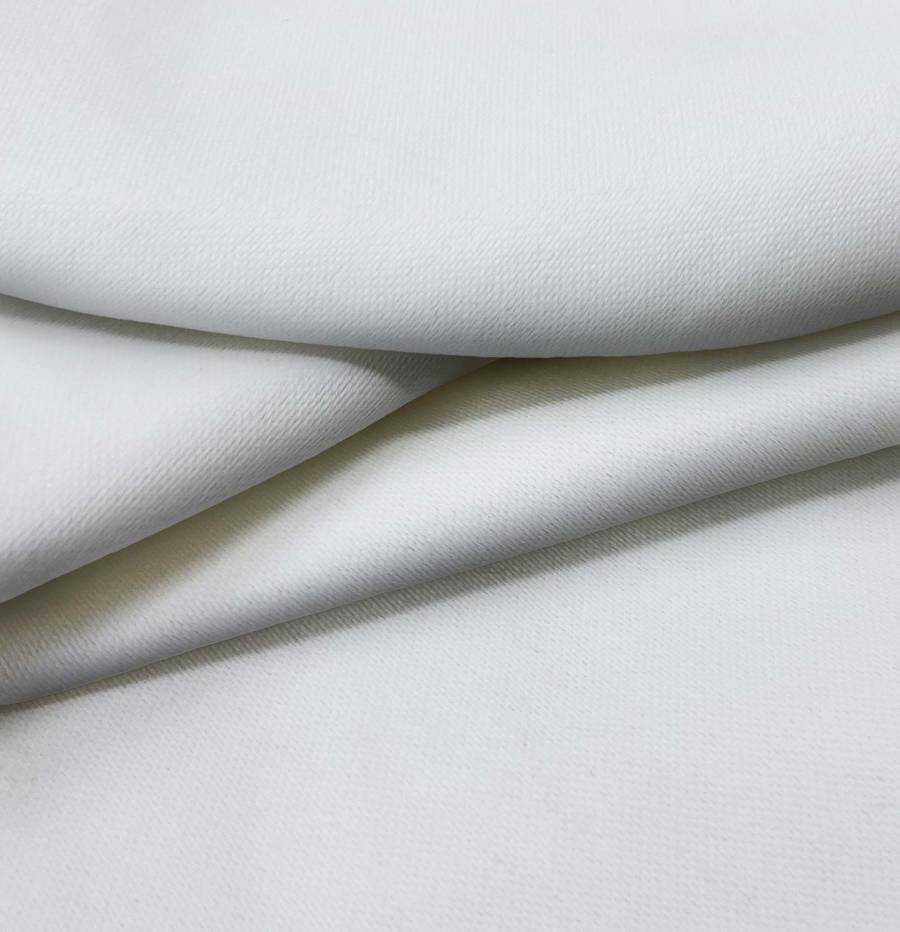 La Lona Oscurante - White Out es un tejido técnico de poliéster de color blanco impreso con un tono gris plata. Este color se logra con una combinación de 22% de tinta Cyan, 15% de tinta Magenta y 13% de tinta Yellow en el CMYK, lo que le brinda un aspecto moderno y elegante.