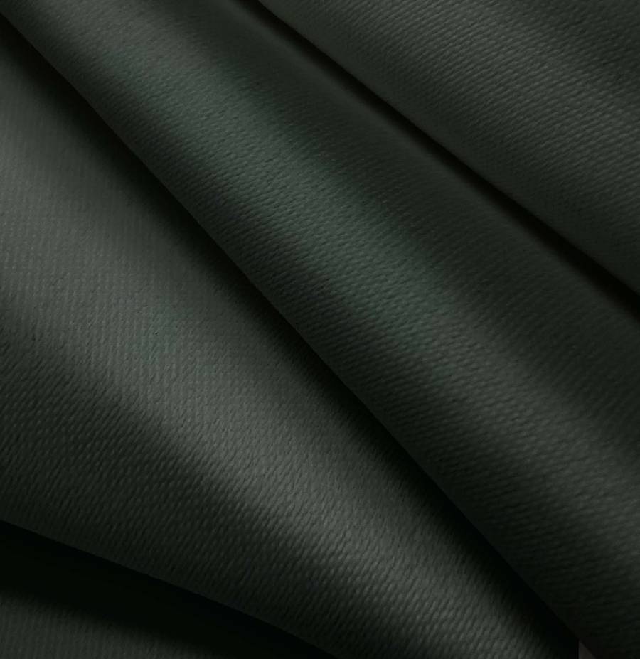 La tela base es Lona Oscurante - White Out, con un color liso impreso en negro noche, reflejando un CMYK de 84 65 72 87. Este color secundario se caracteriza por su profundidad y elegancia, combinando especialmente bien con tonos neutros como blanco, gris y plata.