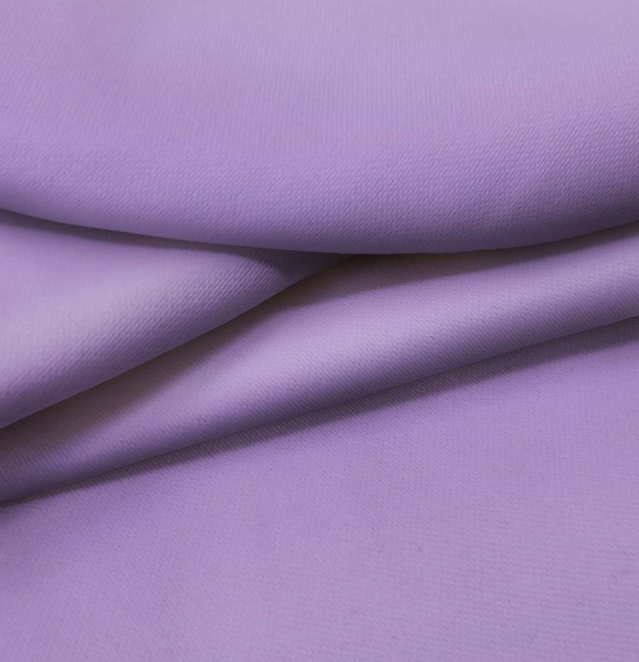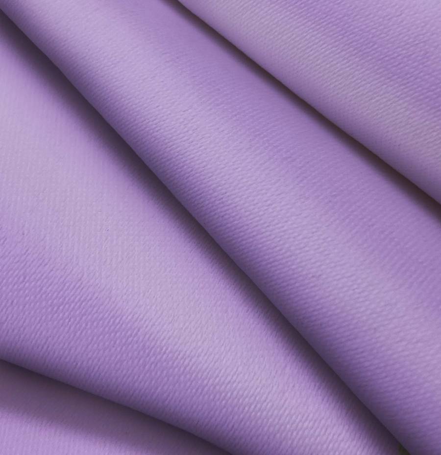 La tela base es Lona Oscurante - White Out, de composición 100% poliéster con un gramaje de 218 gr/m2 y un ancho de 160 cm. El color liso impreso es un Morado Lavanda Púrpura, con una mezcla de tintas Cyan 53, Magenta 59, Yellow 7 y Black 0, reflejando un CMYK de 53 59 7 0. Este color secundario simboliza la calma, la espiritualidad y la creatividad. Combina especialmente bien con tonos blancos, grises y otros tonos púrpuras.