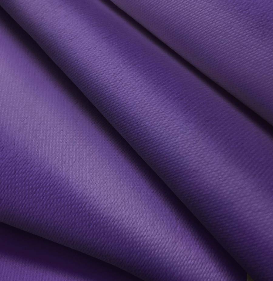 La tela base es una Lona Oscurante en color White Out, con un color liso impreso en tono Morado Iris, con un CMYK de 88 99 20 9. Este color secundario evoca misterio y creatividad, combina perfectamente con tonos neutros como blanco, gris y negro, así como con tonos cálidos como amarillo y naranja.