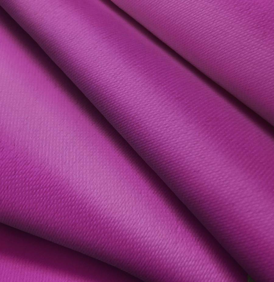 La tela está impresa con el color púrpura a una sola cara por impresión digital textil, lo que garantiza una excelente fijación del color y una alta calidad de imagen. Las características de la tela base incluyen una textura lisa, un tacto rígido y una apariencia opaca, lo que la hace ideal para aplicaciones de decoración, moda y accesorios.