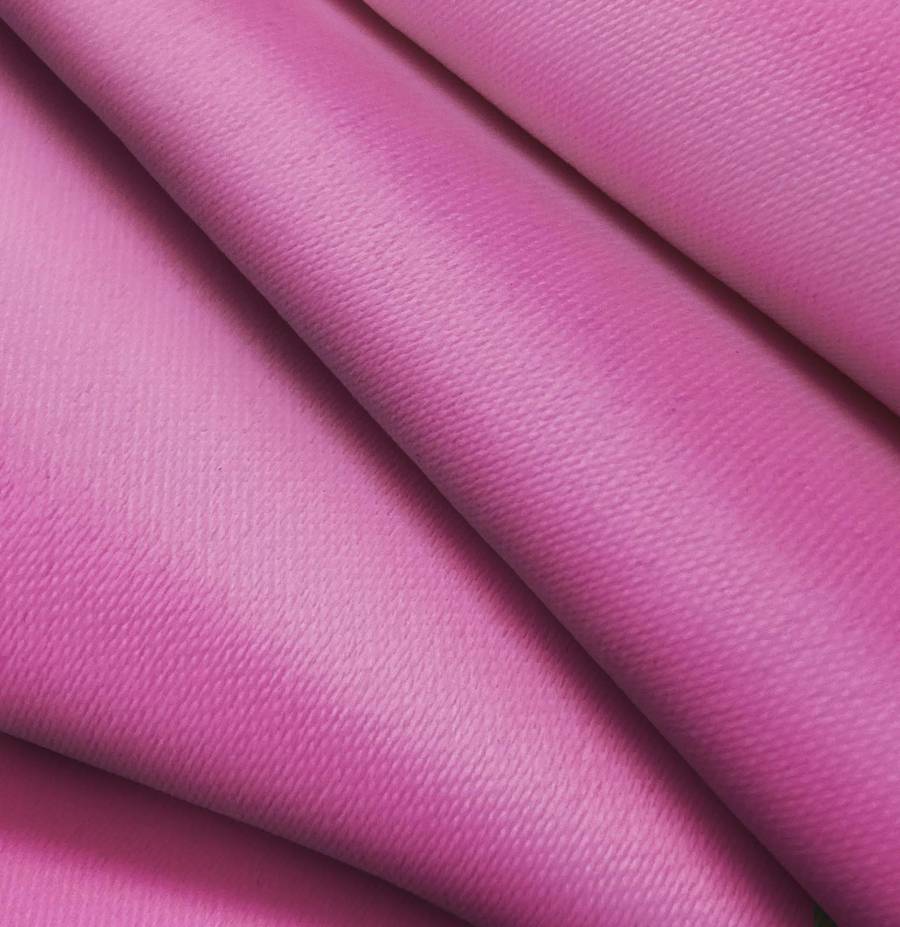 La tela base, Lona Oscurante - White Out, es un tejido técnico de poliéster con una textura lisa y rígida, de color rosa ciruela (CMYK: 22 74 5 0). Este color secundario combina de forma armoniosa con tonos neutros como blanco, gris y negro, así como con tonos cálidos como el naranja y el amarillo.