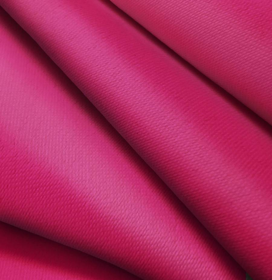 La tela base es una lona oscurante de color blanco puro, con un gramaje de 218 gr/m2 y compuesta por 100% poliéster. El color liso impreso es Rosa Quemado, con una combinación de tintas CMYK 19 100 35 9. Este color secundario simboliza pasión y calidez, combinando perfectamente con tonos neutros como blanco, gris y beige.
