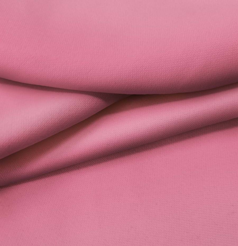 La tela base es una Lona Oscurante en color White Out, con un color liso impreso en tonos de Rosa Rubor, con un CMYK de 17 70 35 4. Este color simboliza la delicadeza y la feminidad, combina especialmente bien con tonos neutros como el blanco o el gris.