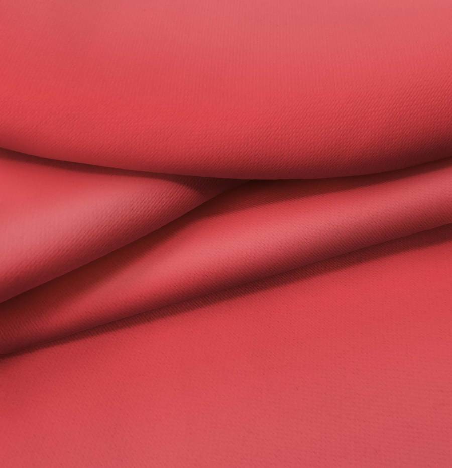 La tela base es Lona Oscurante - White Out, un tejido técnico de poliéster con un gramaje de 218 gr/m2 y un ancho de 160 cm. El color liso impreso es Rojo Ladrillo refractario, con una combinación de tintas Cyan 16, Magenta 87, Yellow 71 y Black 6 en el CMYK. Este color simboliza la pasión y la fuerza, con combinaciones ideales en tonos neutros como beige, blanco o negro.