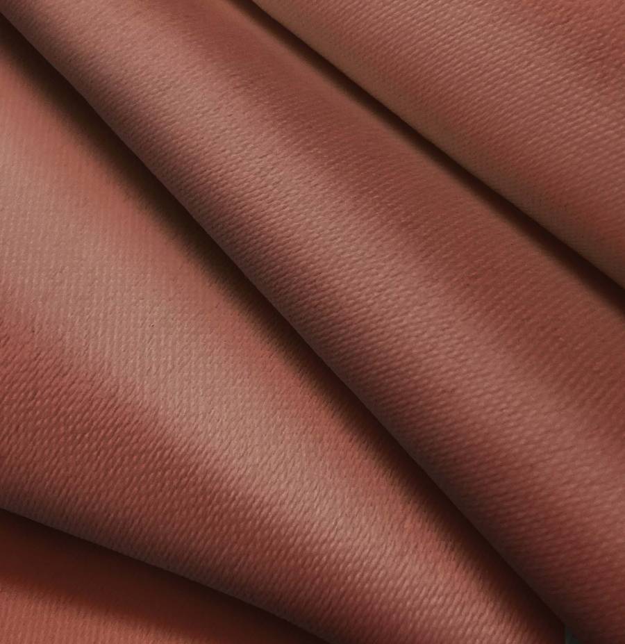 La tela base de esta descripción es la Lona Oscurante - White Out, la cual presenta un color liso impreso en tonos de Marrón Sangre, con una combinación de tintas Cyan, Magenta, Yellow y Black en un porcentaje de 33, 74, 71, 40 respectivamente. Este color secundario evoca sensaciones de calidez y elegancia, combinando a la perfección con tonos neutros como beige, blanco y gris.
