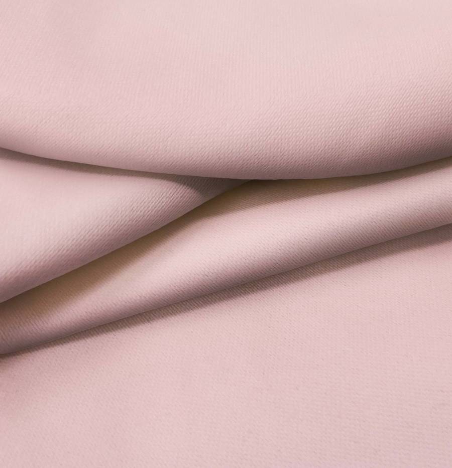 La tela base es la Lona Oscurante - White Out, un tejido técnico 100% poliéster con un gramaje de 218 gr/m2 y un ancho de 160 cm. El color liso impreso en este tejido es Rosa Margarita, con un CMYK de 11 39 25 1. Este color secundario evoca frescura y alegría, combinando a la perfección con tonos neutros como blanco y gris, así como con otros colores pastel.
