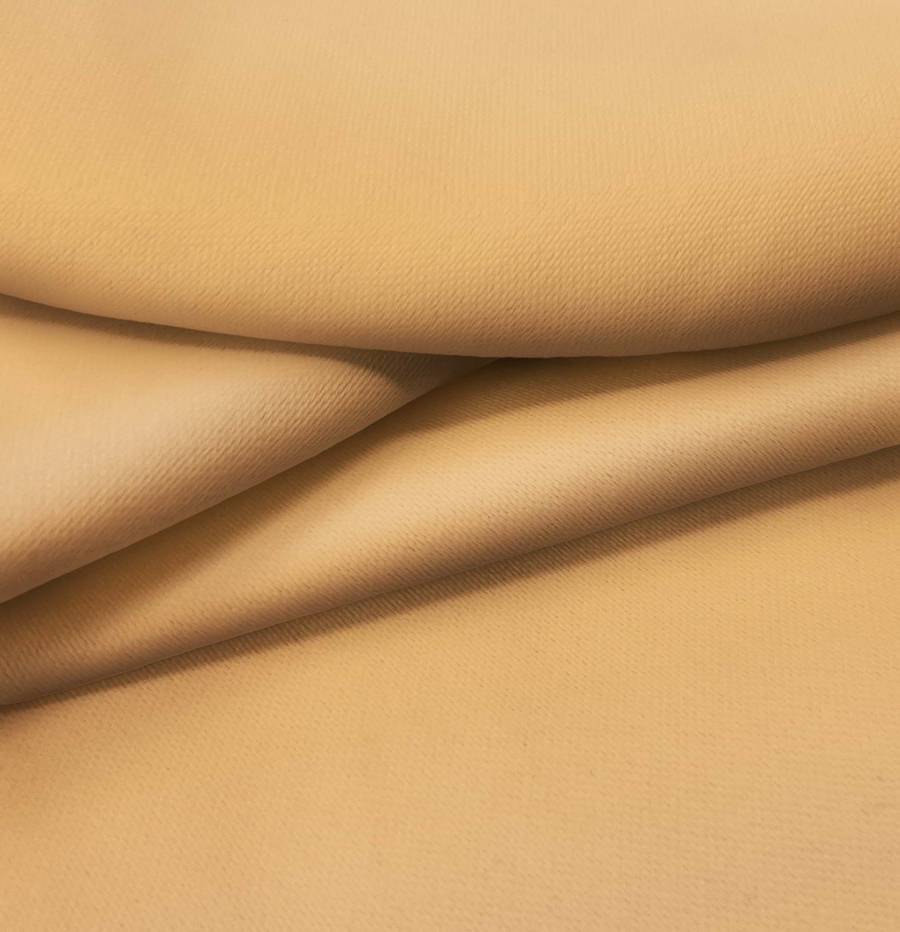 La tela base Lona Oscurante - White Out es un tejido técnico de poliéster con un gramaje de 218 gr/m2 y un ancho de 160 cm. El color liso impreso es Naranja Cantalupo, con un CMYK de 13 45 67 2, que combina perfectamente con colores como el blanco, el gris y diferentes tonalidades de marrón.