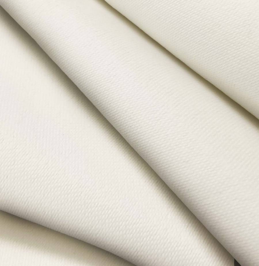 La tela base, Lona Oscurante - White Out, es un tejido técnico de 100% poliéster con un gramaje de 218 gr/m2 y un ancho de 160 cm. El color liso impreso es Blanco Marfil Suave, con una combinación de tintas Cyan: 4, Magenta: 9, Yellow: 18 y Black: 0 en un CMYK de 4 9 18 0. Combina especialmente bien con tonos neutros como gris claro y beige.