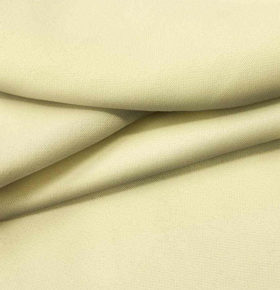 La tela base es Lona Oscurante - White Out, con un color liso impreso en amarillo maíz. El CMYK del color es 5 7 47 0, lo que refleja una tonalidad brillante y cálida. Combina adecuadamente con colores neutros como blancos, grises y negros, así como con tonos tierra como marrones y beige.